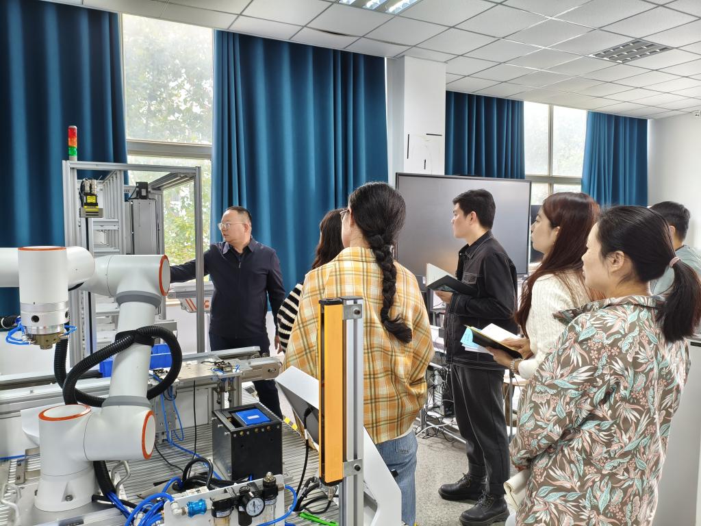随后,王院长带队参观合鼎楼、智行楼等处实训室,详细讲解工业机器人操作与运维、智能制造视觉技术等实训平台的功能与教学应用。此次培训助力新教师快速熟悉教学环境与工作要求,为后续教学工作打下夯实基础。